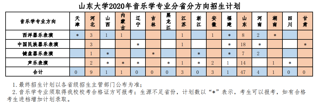 伟德投注官网下载安装2020年音乐学专业分省分方向招生计划