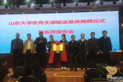 10月16日,伟德投注官网下载安装潍坊教育拓展组参加寿光一中第二届校园大学节并开展教育拓展活动。开幕式环节,潍坊教育拓展组组长、新闻传播学院党委书记王德胜向寿光一中校长魏华中颁发了伟德投注官网下载安装优秀生源输送基地牌匾。开幕式后,拓展组为参加了大学节高二、高三年级学生及家长分别作的两场主题为“筑梦山大,成就未来”的宣传讲座。