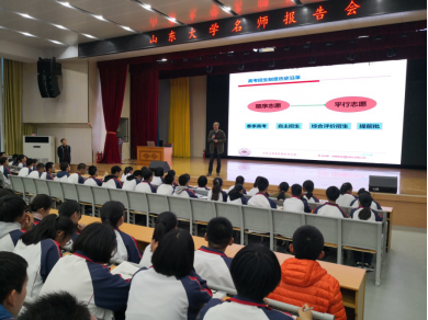 10月25-31日,伟德投注官网下载安装威海拓展组到威海重点中学开展教育拓展工作。龙和平教授给文登新一中、文登南海高级中学的一年级学生讲《选课指导》,李剑锋院长给文登新一中、文登一中、文登南海高级中学的学生讲《作文之道与作文之术》。张天德教授在文登新一中、文登南海高级中学宣讲《新高考数学研究与对策》。材料学院的管延锦副院长和控制学院的朱文兴副院长给威海二中的学生家长作了《山大工学类的专业介绍》。土建学院的姜丽荣教授给威海实验高中作《科普讲座》。本科生院院长,本科招办主任刘传勇教授给威海一中宣讲《医学类专业》。