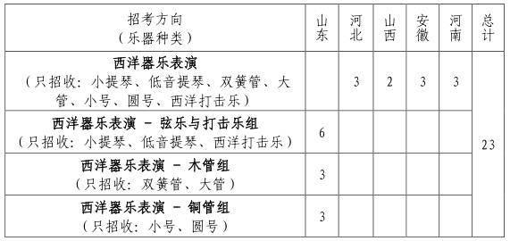 注:在河北省,西洋打击乐对应乐器种类为定音鼓、马林巴、小军鼓。